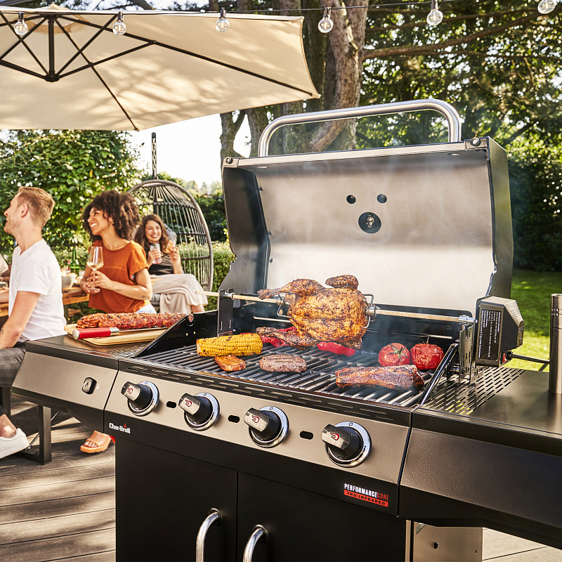 Модель серии Performance CORE в стильном черном цвете оснащенная запатентованной инфракрасной пластиной TRU Infrared™, которая обеспечивает равномерный жар по всей решетке и предохраняет от вспышек капающего жира в котле.