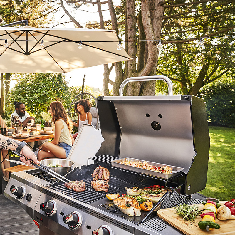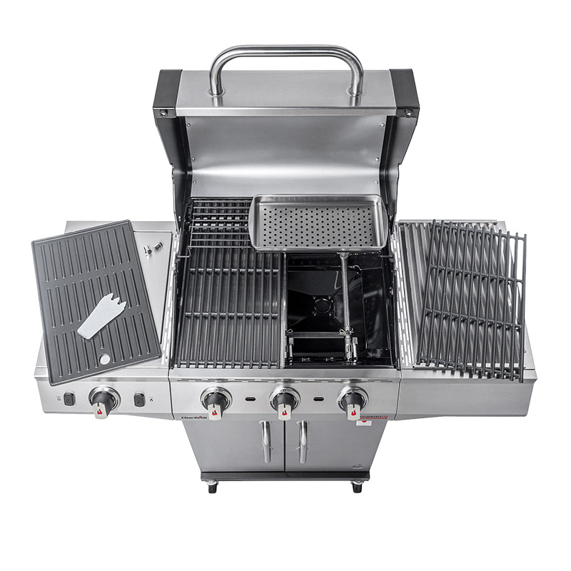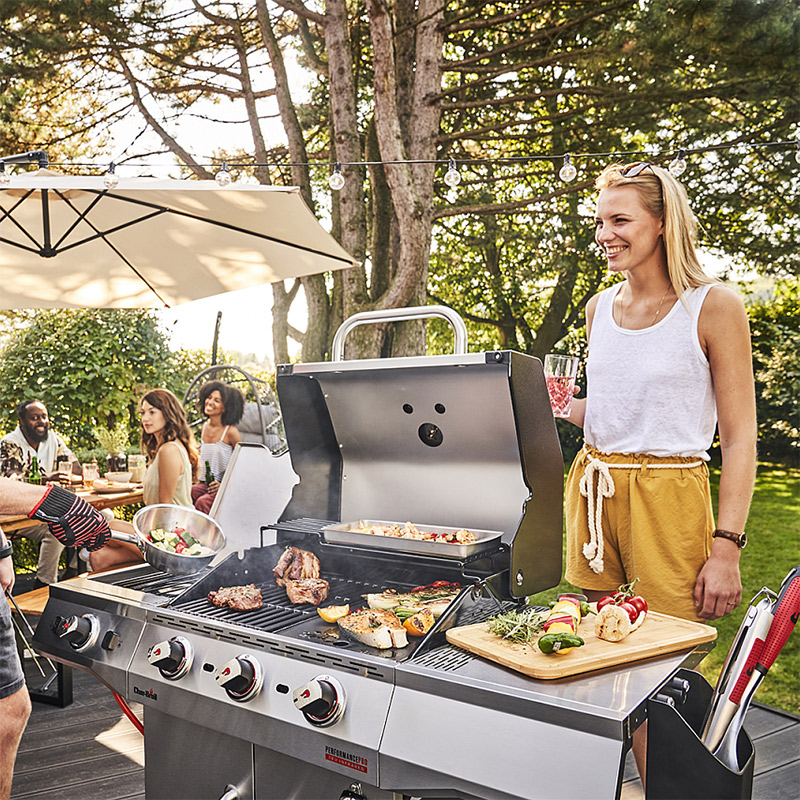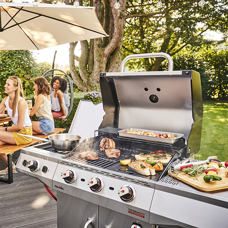 Новейший газовый гриль Performance PRO™ оснащается запатентованной инфракрасной пластиной TRU Infrared™, которая обеспечивает равномерный жар по всей решетке и предохраняет от вспышек капающего жира в котле. Эта сбалансированная модель среднего размера с тремя основными и дополнительной боковой горелками прекрасно подойдет для любой компании.