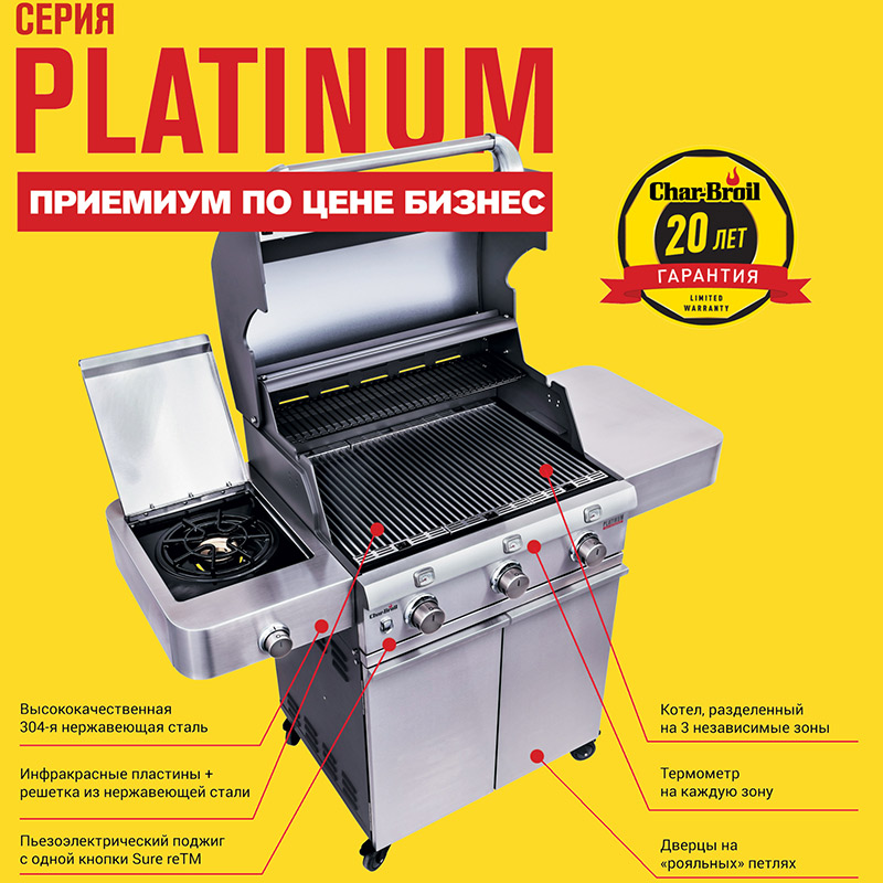 Продвинутый газовый гриль премиум класса по разумной цене. Бескомпромиссная надежность конструкции, качество сборки и материалов. Гриль оснащен запатентованной решеткой TRU-Infrared™
