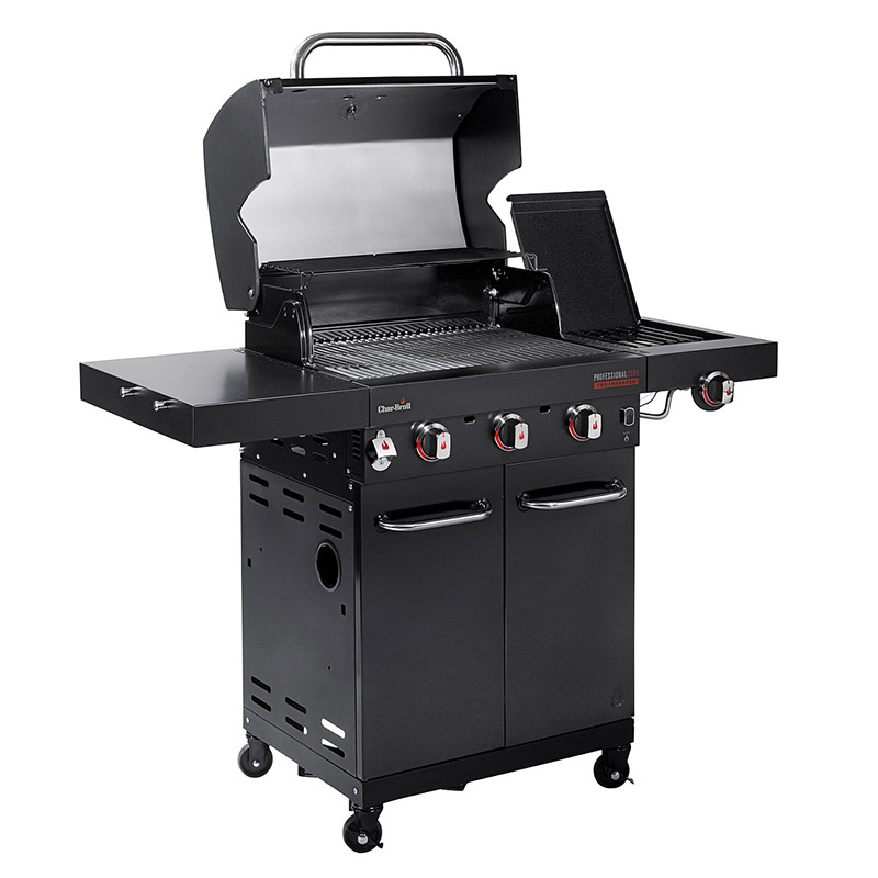 Новейшие газовые грили Char-Broil серии Professional™ третьего поколения, являются нашими самыми популярными моделями в США, Европе и по всему миру. Газовые грили Professional™ оснащаются запатентованной инфракрасной пластиной TRU Infrared™, которая обеспечивает равномерный жар по всей решетке и предохраняет от вспышек капающего жира в котле. Эта сбалансированная модель среднего размера с тремя основными и дополнительной боковой горелками прекрасно подойдет для любой компании.