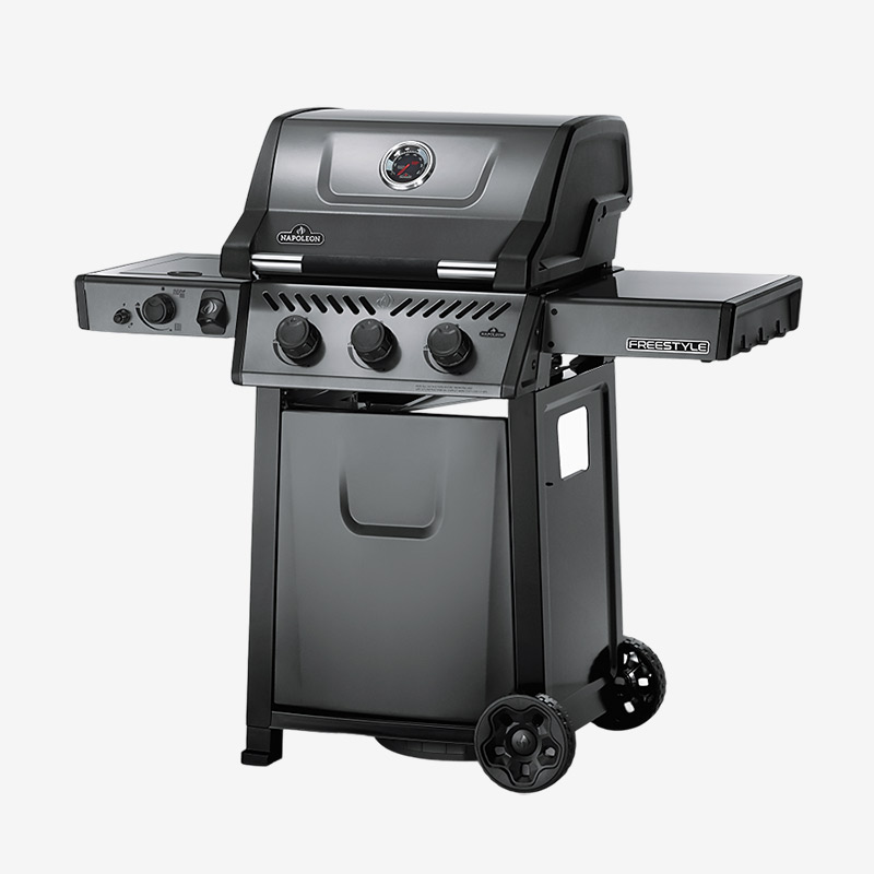 Napoleon Freestyle — это компактный и стильный газовый гриль, оснащённый тремя независимыми горелками и рабочей решёткой размером 51 х 45 см.