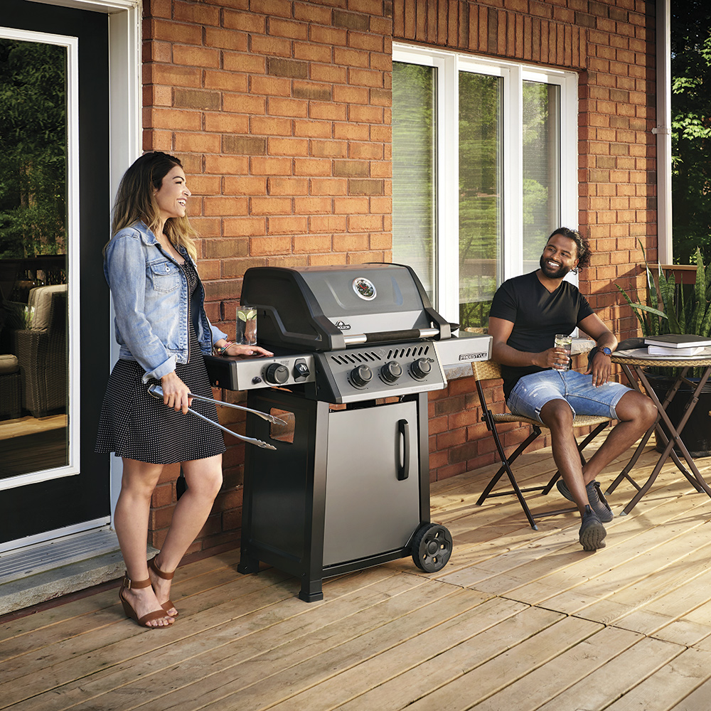 Napoleon Freestyle - маленький, красивый, но мощный гриль с тремя независимыми горелками и рабочей решеткой 51 х 45 см.