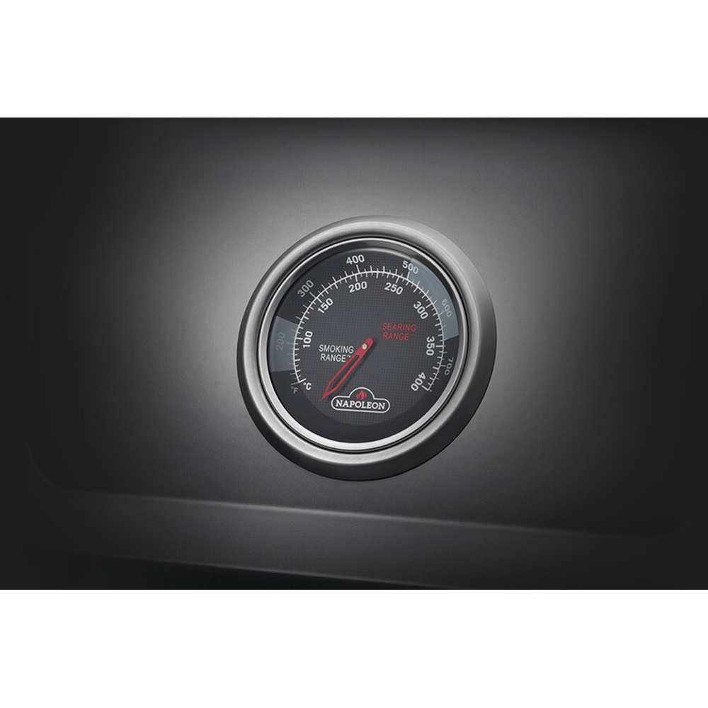 Также в конструкции: очаг из литого алюминия, встроенный в крышку датчик температуры ACCU-PROBE™, интегрированная в пристолье открывалка для бутылок.