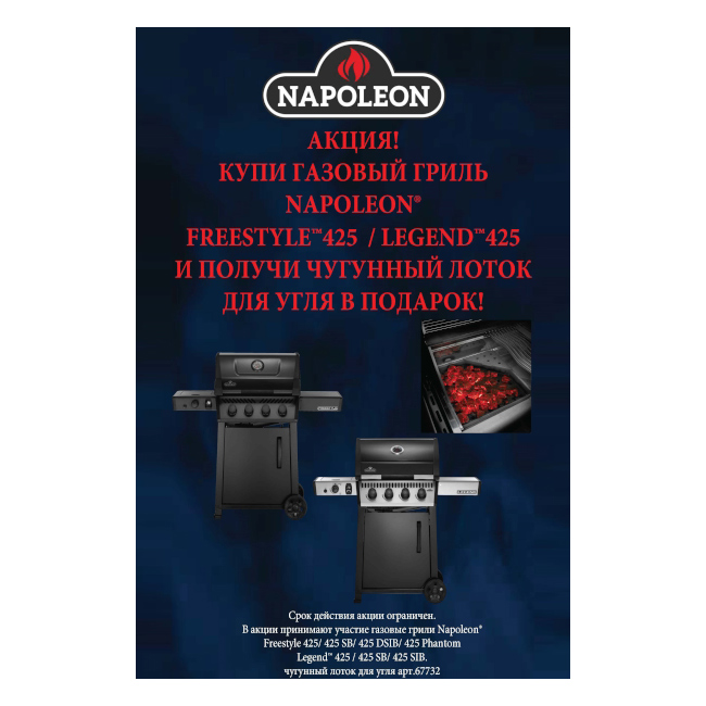 Акция! При покупке этого гриля вы получаете в подарок аксессуар для гриллинга - Лоток для углей щепы. Сроки акции ограничены.