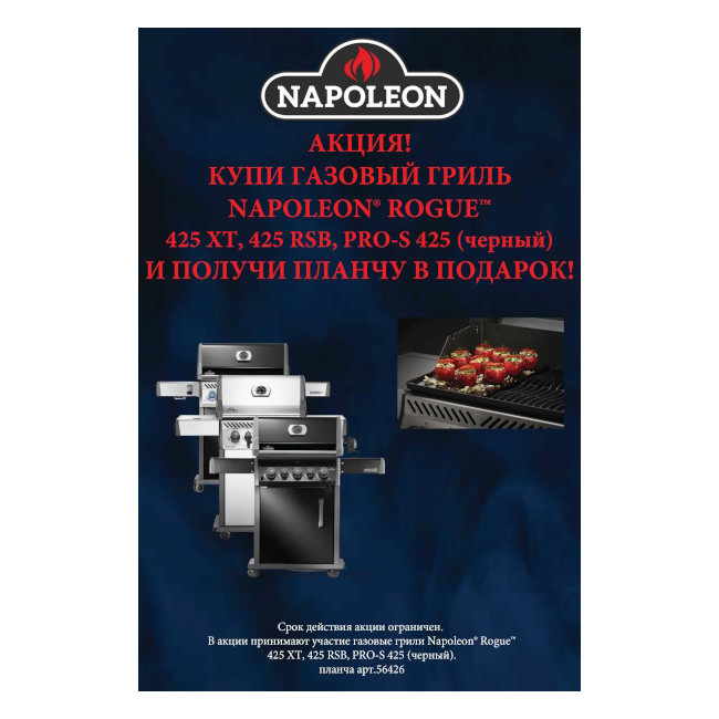 Акция! При покупке этого гриля вы получаете в подарок аксессуар для гриллинга - Планчу. Сроки акции ограничены.