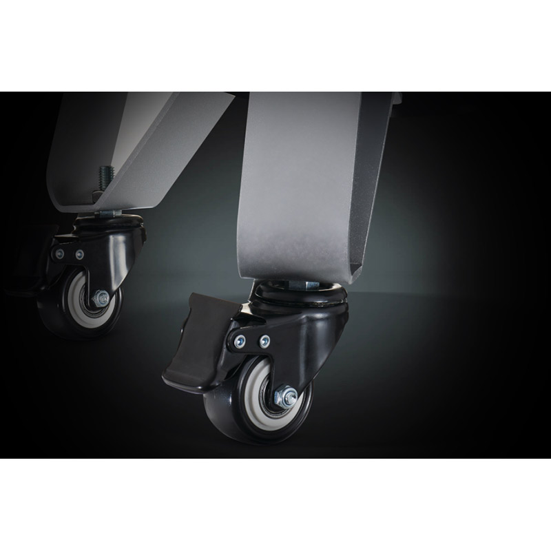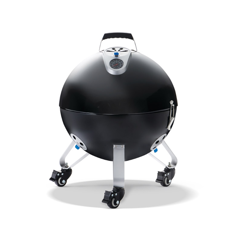 Корпус, крышка и ярусы изготовлены из стали с жаростойким фарфоровым покрытием. Конструкция фиксируется металлическими защёлками, обеспечивая герметичность и устойчивость. Три ножки с колёсами и стопорами гарантируют мобильность и надёжную установку. Основание можно использовать как безопасное костровище.