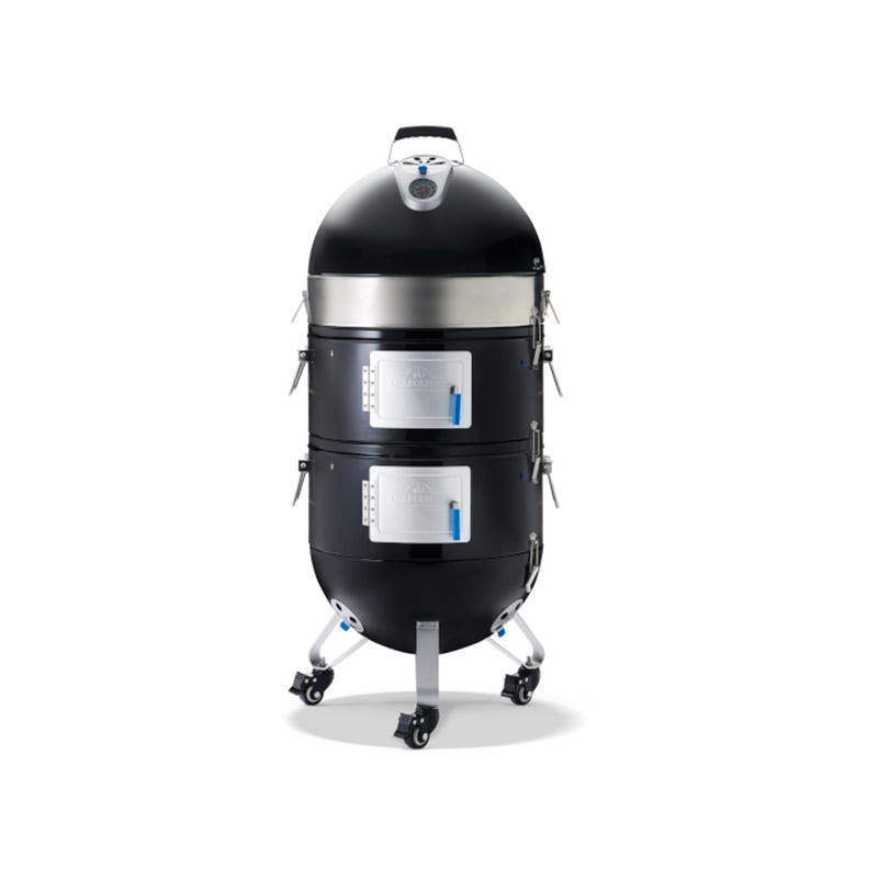 Каждый ярус имеет удобную дверцу с термостойкой ручкой для доступа к продуктам, углям и щепе. Предусмотрен специальный порт с силиконовой вставкой для щупа электронного термометра.