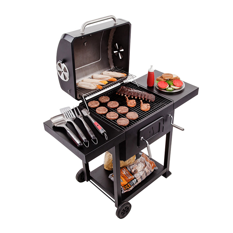 - Нижняя решетка для хранения угля: Удобно хранить запас угля непосредственно под грилем.